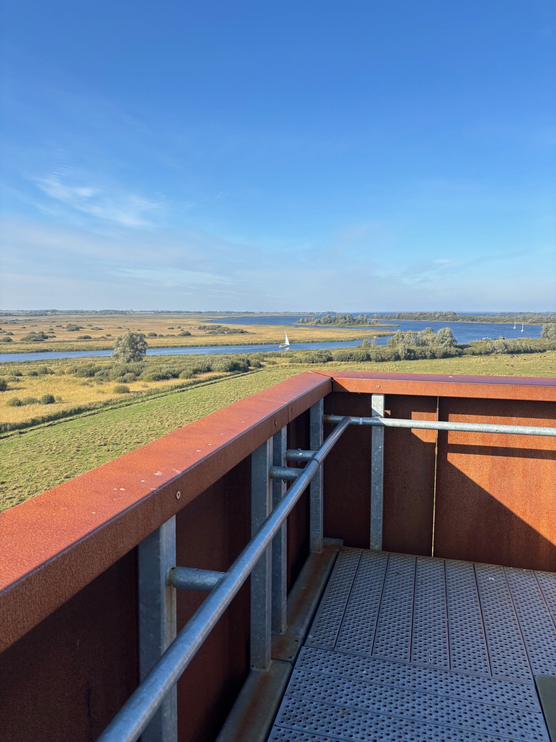 Overal springen padden voor onze voeten weg. Libellen zweven rond onze knieën. Deze bijzondere wandeling eindigt op de Reiddomp, een nieuwe toren in het Friese deel van het Lauwersmeergebied. Dit is Kollumeroord. Ruim veertig jaar geleden is hier bos aangeplant met hoofdzakelijk zwarte populieren, elzen en abelen. Het westelijke deel heet Diepsterbos. De toren – eigenlijk twee torens want ying en yang – staat aan de rand. Vanaf vijfentwintig meter hoogte kijk je schitterend uit over het water van het Lauwersmeergebied. Rechts vogels, links runderen, in de verte een zeiltje. Nynke Rixt Jukema en ik zijn vandaag de enige bezoekers. Jukema is architect, ze heeft de toren ontworpen. Maar ze is ook de bedenker van Dark Sky Waddengebied. Ik wil er alles over weten. Duisternis, zegt ze, is niet alleen een landschappelijke kwaliteit, het is essentieel voor mens, plant en dier. Op de boerderij van haar ouders bij Zwarte Haan ontbrak het licht, maakte het maanlicht alles magisch. Maar Nederland is tegenwoordig ‘s nachts hel verlicht. Oerkwaliteiten als stilte en duisternis zijn vrijwel overal verloren gegaan. We moeten de duisternis weer leren begrijpen en waarderen. Sterrenkijken is niet haar enige doel. Haar stichting Feel the Night heeft ze echter vier jaar geleden opgeheven. Twee jaar geleden verhuisde ze met haar gezin naar Denemarken. Hoe gaat het met de uitvoering van haar idee om de hele waddenkust weer donker te maken?