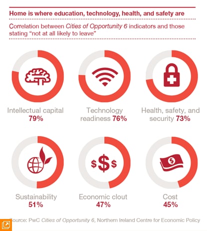 Waarop scoort Amsterdam zo hoog? Amsterdam is de beste als het gaat om gezondheid, veiligheid, duurzaamheid en natuur. Ook is Amsterdam – heel verrassend – beste stad op technological readiness. Verder: de gateway functie (Schiphol) is op orde, maar niet de beste (want niet duurzaam). Beduidend minder hoog scoort de stad op demografie en transport. Voorts moet Amsterdam veel steden voor laten gaan op economic clout (zeg maar: agglomeratievoordelen) en ease of doing business. Hoezo matig op demografie? De Amsterdamse bevolking, rekent PWC voor, wordt snel ouder. De stad is weliswaar populair om in te wonen, maar er worden veel te weinig woningen gebouwd. Doordat niemand de stad meer uit wil, worden we met z’n allen snel ouder. Nog even en Amsterdam is vergrijsd. Anders gezegd: Amsterdam is te klein. Een andere achterstand doet zich voor in het openbaar vervoer. Daarop scoort Amsterdam ronduit beroerd. Er is jaren achterstand in investeringen in het openbaar vervoer, de ov-chipcard is niet gebruiksvriendelijk, er is teveel ingezet op de auto, het OV is te duur. Galal was heel duidelijk hierover: andere steden in de wereld hebben de afgelopen tien jaar juist zwaar in hoogwaardig openbaar vervoer geïnvesteerd. PwC stelde voor tenminste de NoordZuidlijn door te trekken naar Schiphol.